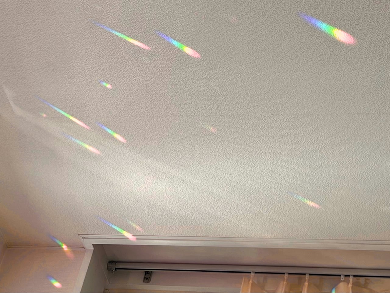 その日の太陽光の角度によって、サンキャッチャーはまったく違う表情の虹を見せてくれます。