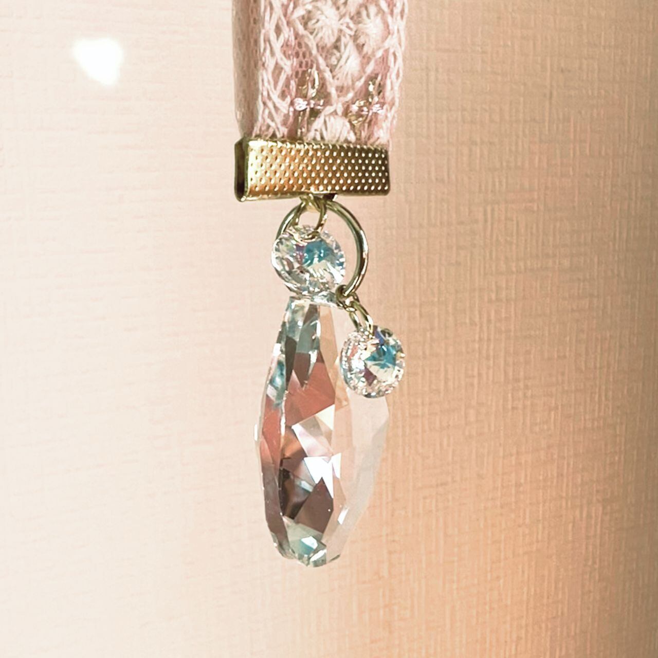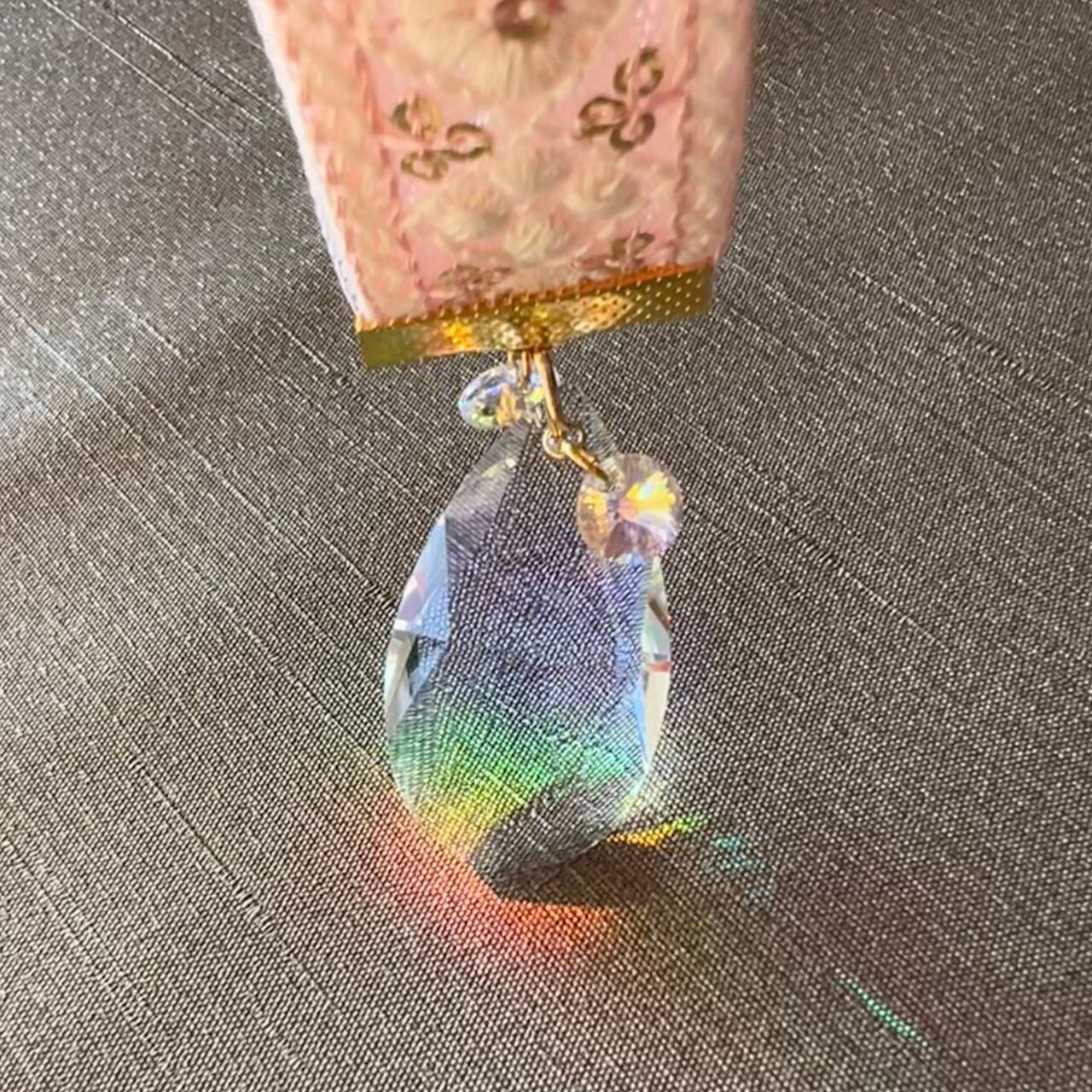 しずく型クリスタルが放つ虹のプリズムは、アクセサリーでありながらサンキャッチャー特有の浄化の役割を果たし、凛とした輝きを放ちます。