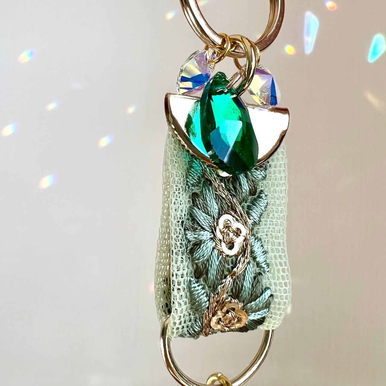 エンブロとは、一針一針に想いを込めた刺繍(Embroidery)のこと。 緻密に編み込まれた糸の光沢、スパンコールの繊細な煌めき、そして布という素材が持つ柔らかな温度。 サンキャッチャーの輝きとミックスされた、これまでにない深い表情を持つバッグチャームシリーズです。