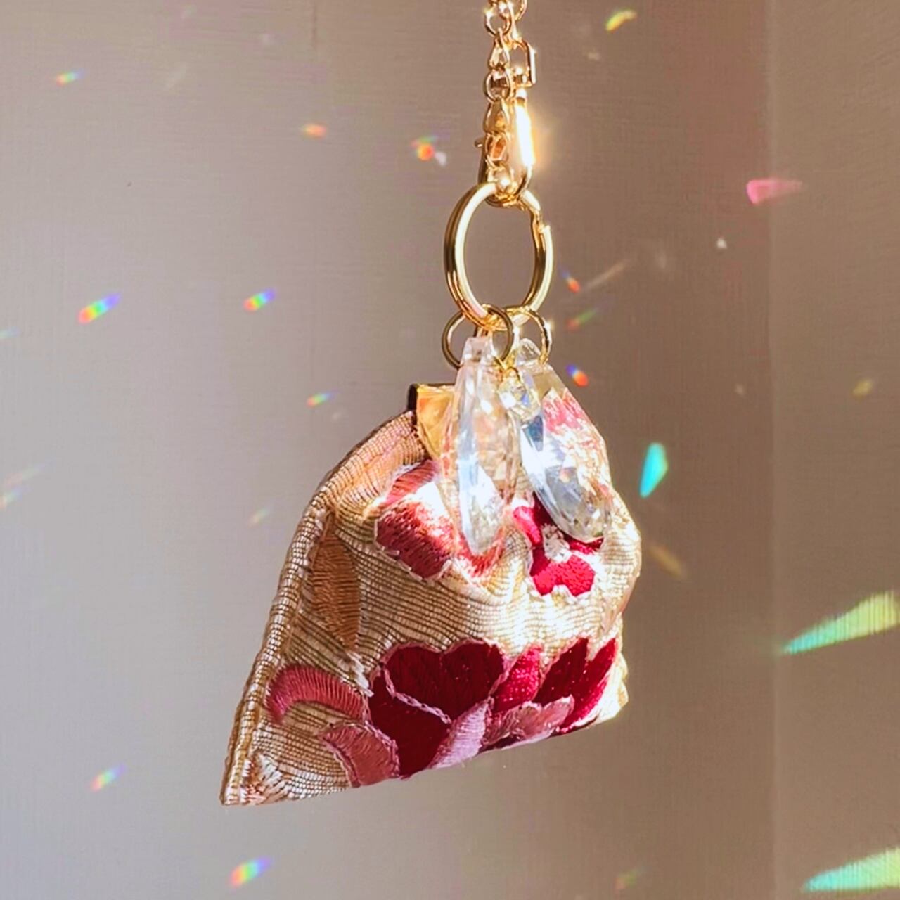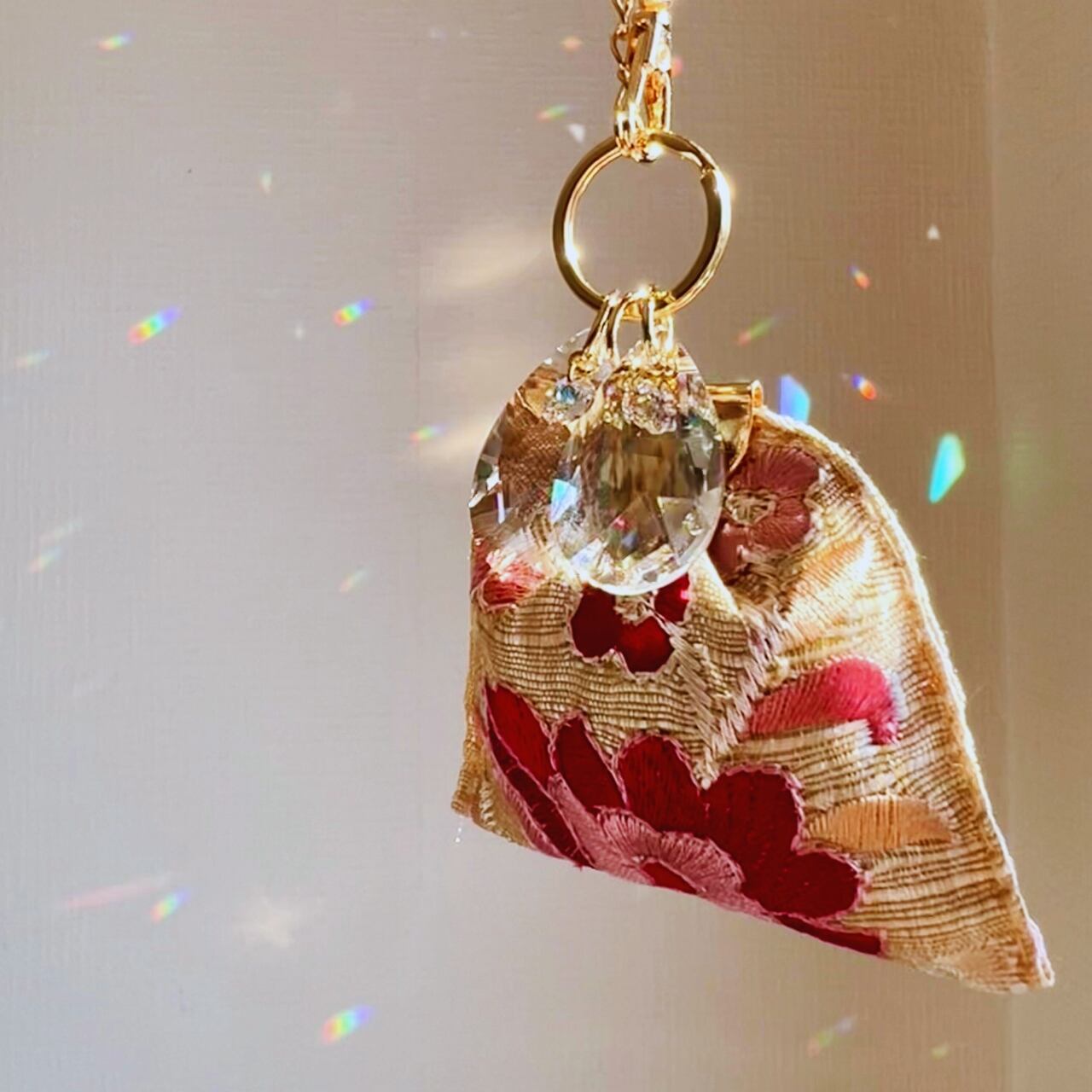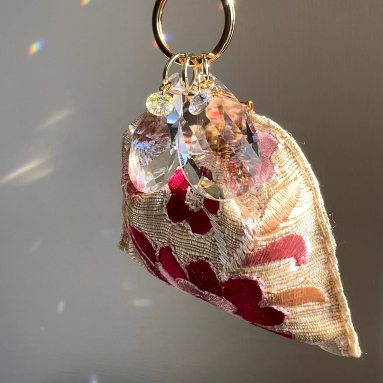 エンブロとは、一針一針に想いを込めた刺繍(Embroidery)のこと。 緻密に編み込まれた糸の光沢、スパンコールの繊細な煌めき、そして布という素材が持つ柔らかな温度。 サンキャッチャーの輝きとミックスされた、これまでにない深い表情を持つバッグチャームシリーズです。