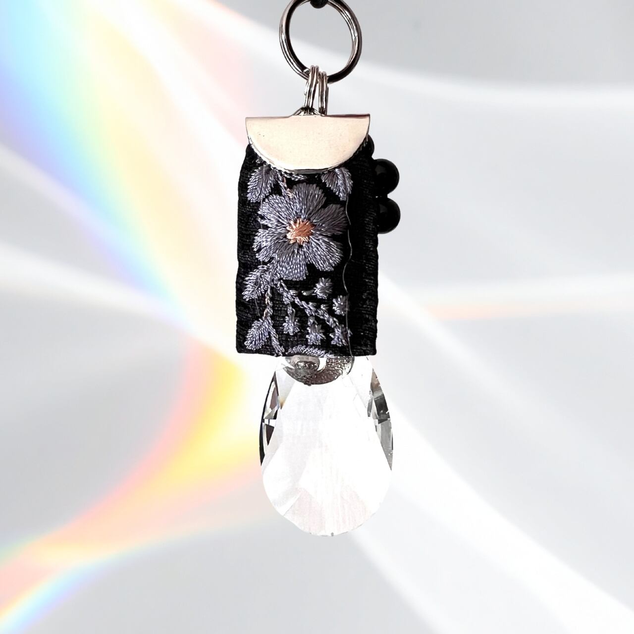 キーホルダーやストラップに飾るアクセサリーに、インド刺繍とサンキャッチャーをあしらった、ラピスローズオリジナルの新しいアイテムです。
