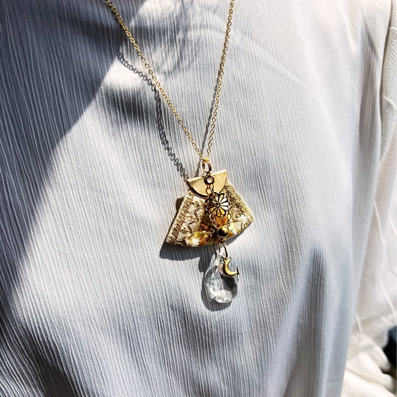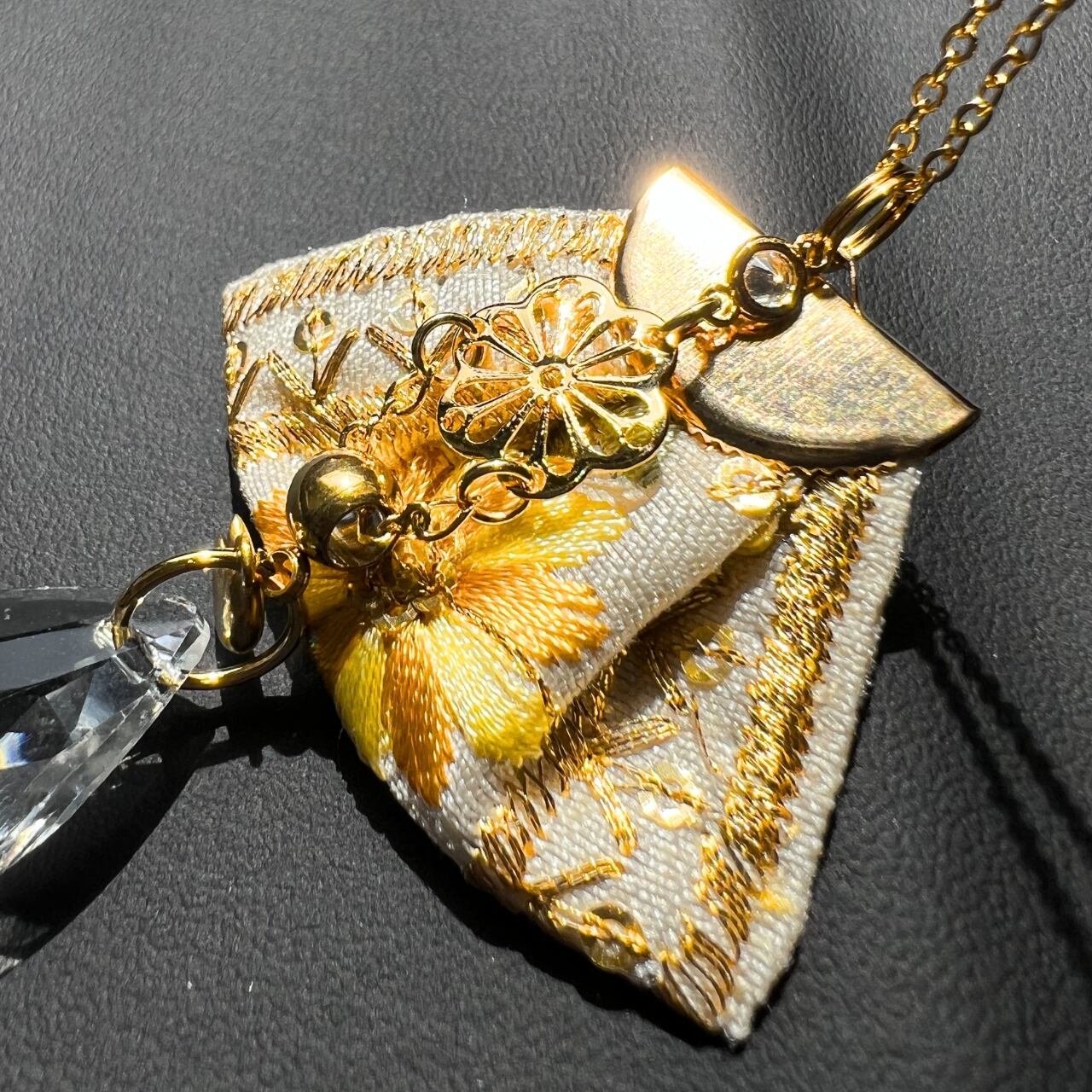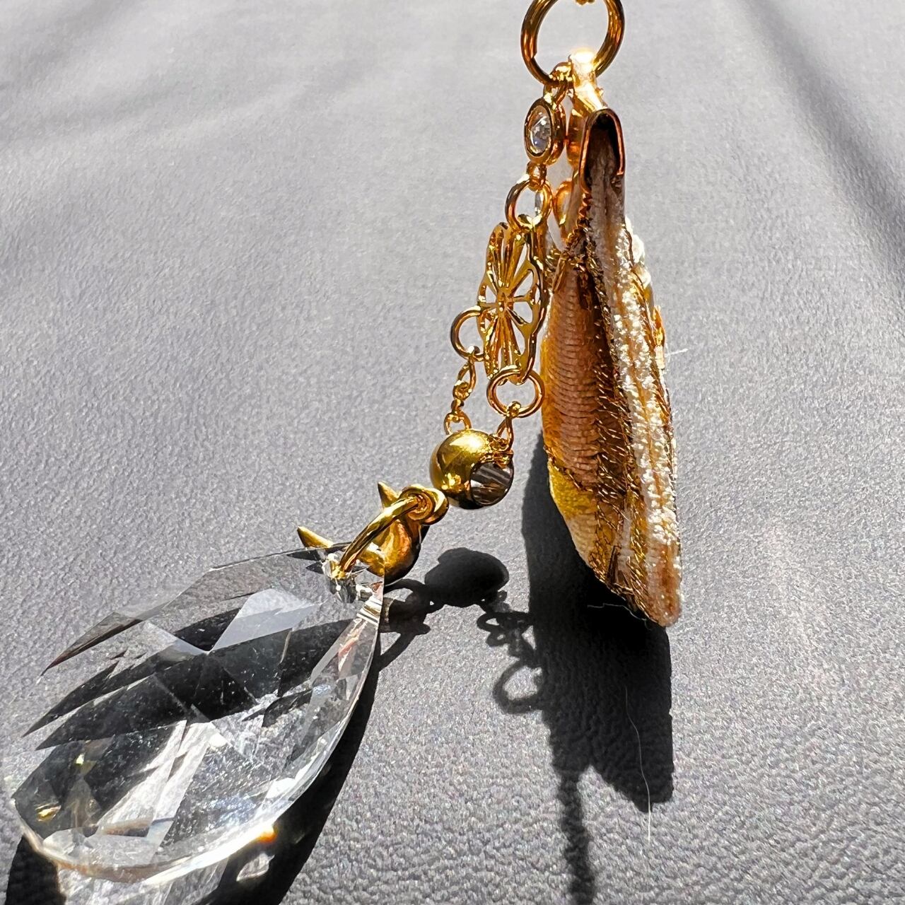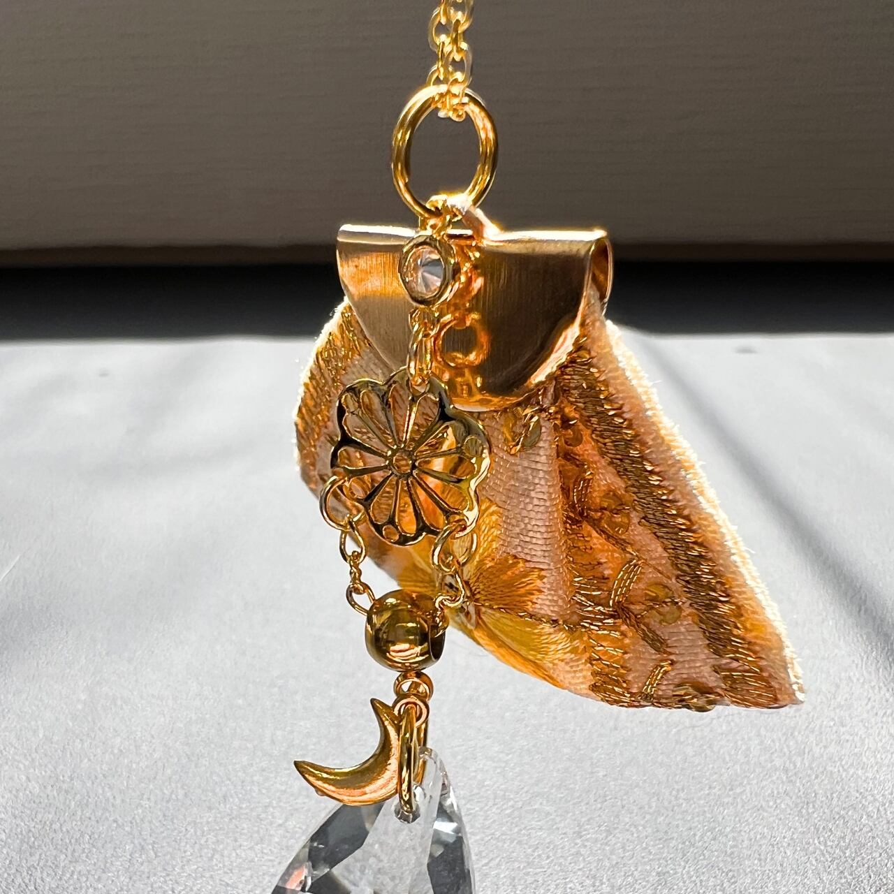 しずくサンキャッチャーとインド刺繍リボンをペンダントに!