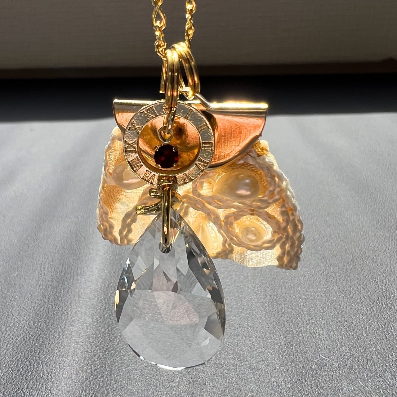しずくサンキャッチャーとインド刺繍リボンをペンダントに!